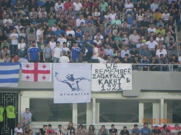 Those incidents, although quite unpleasant, could still be attributed to football hooliganism that takes place in many countries. However, the worst and politically motivated part of those provocations did occur during the match, when a Georgia fan group hung out a poster that said “We remember Zagatala and Kakhi. 1921” by claiming two historical provinces of Azerbaijan.[2] The poster was taken away after efforts by UEFA officials.