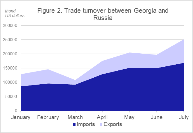 On the other hand, in Georgia, despite the considerably extended supply chain operations with other countries, the share of trade with Russia in the total trade balance of Georgia remained unchanged in comparison with the same term of last year, at 12%.