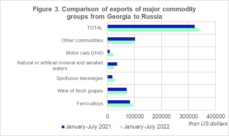 To conclude, Georgian export market remained dependent on Russia during the first seven months of 2022, w