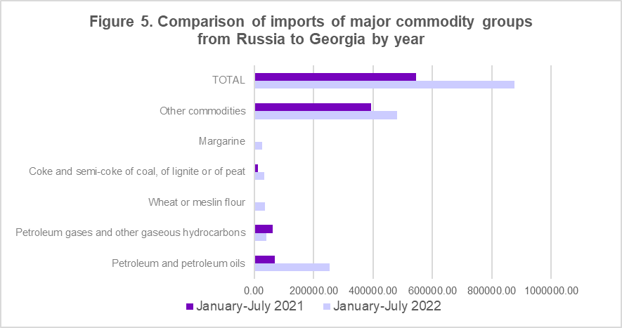 During the first seven months of 2022, exports of Georgian products to Russia increased by 5% and amounted to USD 339 million, while the imports soared b