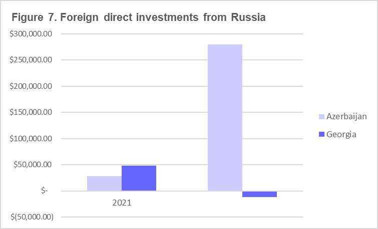 On the other hand, in Azerbaijan, Russian investments skyrocketed in the first 7 months of 2022, soaring at USD 280 million. This could be the reflection of newly launched businesses by Russian investors and businessmen, mainly who fled the country.